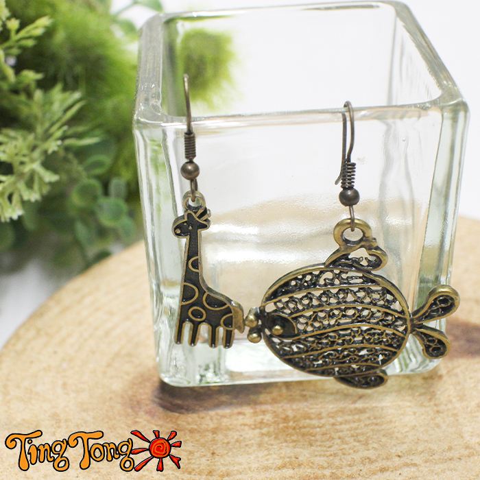 耳飾り 両耳用 フック フープ エスニック !いきもの モチーフ ピアス 可愛い オシャレ プチプラ プレゼント レディース 体型カバー 30代 40代 50代 60代