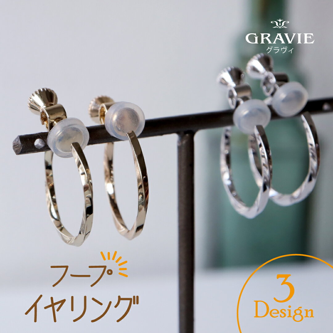 イヤリング フープ ニッケルフリー レディース アクセサリー プレゼント カジュアル ゴールド シルバー ピアス見え 変形 おしゃれ 可愛い 人気 シンプル 上品 洗練 シリコンカバー付 カジュアル 定番 誕生日 金属アレルギー対応