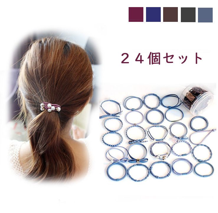 予約 レディース ヘアゴム 24種セット おしゃれ かわいい シンプル ヘアアクセサリー 髪ゴム まとめ髪 ポニーテール アレンジ ヘアセット キッズ 大人兼用 カジュアル ナチュラルカラー ヘアアレンジ 普段使い 学校 会社