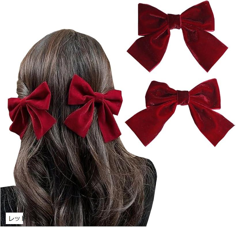 ベロア リボン 2個セット クリップ アクセサリー 韓国 ファッション ヘアピン 結婚式 ヘアセット パーツ レッド