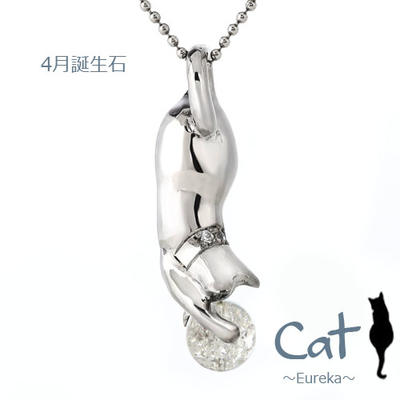 大人気、4月誕生石クリスタルの「にゃんことボール」ペンダント〜♪ ニャンコ好きにはたまらない、ボールにじゃれて遊ぶほっこり可愛いニャンコ・・・。 自分へのご褒美に、お誕生日、結婚記念日のプレゼント、ホワイトデー、クリスマスなどのイベントにおすすめです! ボールの石は選び抜いた綺麗な天然石のクリスタル。一つ一つ心を込めた手作りのジュエリーは、心癒される大人可愛いプレゼントとして喜ばれる愛らしいジュエリーです。 ※首輪のスワロフスキーは接着ではなく宝飾技術の石留めで加工されています。 ■大きさ: H 27mm W 8.6mm ■素材:天然石クリスタル丸玉 6 mm・スワロフスキージルコニア・シルバー925 (プラチナコーティング) ■チェーン:ブロス製 ボールチェーン 40cm ロジウムコーティング (金属アレルギーの方はご注意下さい)。 ※シルバー925チェーン(プラチナコーティング)ご希望の方は「商品をかごに追加」の上にあるプルダウンより『シルバー925チェーン』をお選びください。プラス 1200円でお取り替え致します。 尚、シルバーチェーン+1200円は、ご注文後に加算処理をし、商品承諾メールにて合計金額をお知らせ致します。 ※実際の商品と同じように撮影しておりますが、お客様がお使いになっているパソコンの環境によって色合いなど多少の誤差が生じる場合がございます。何卒ご了承下さいませ。4月誕生石クリスタルの「ボールとニャンコ」ペンダントは、ユーレカ オリジナルのハンドメイドのジュエリーです。 甘すぎることのない大人可愛いペンダントは、丸玉クリスタルでもさりげない存在感を放ちます。 ほっこり癒されるニャンコ後ろ姿は、ニャンコ好きなら誰もが喜ぶペンダント。 思わずニッコリと微笑んでしまいます。・・・そんなユニークなペンダントはプレゼントとして、またご自分へのご褒美として、おすすめの心温まる手作りジュエリーです。 ※ 画像をクリックすると拡大します。