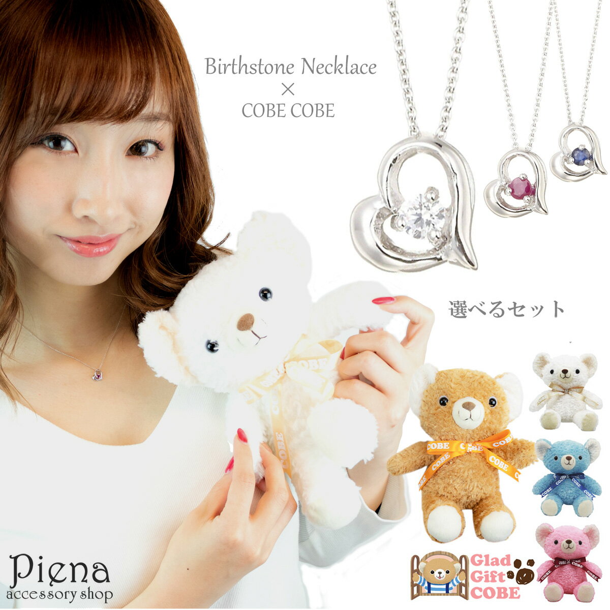 ネックレス ぬいぐるみ 選べるセット シルバー925 COBECOBE オープンハート ストーン 誕生石 誕生月 銀製品 可愛い キュート ホワイトデー 誕生日 記念日 お返し プレゼント ギフト 春夏秋冬 大人気 あす楽 くま 熊 クマ ベア