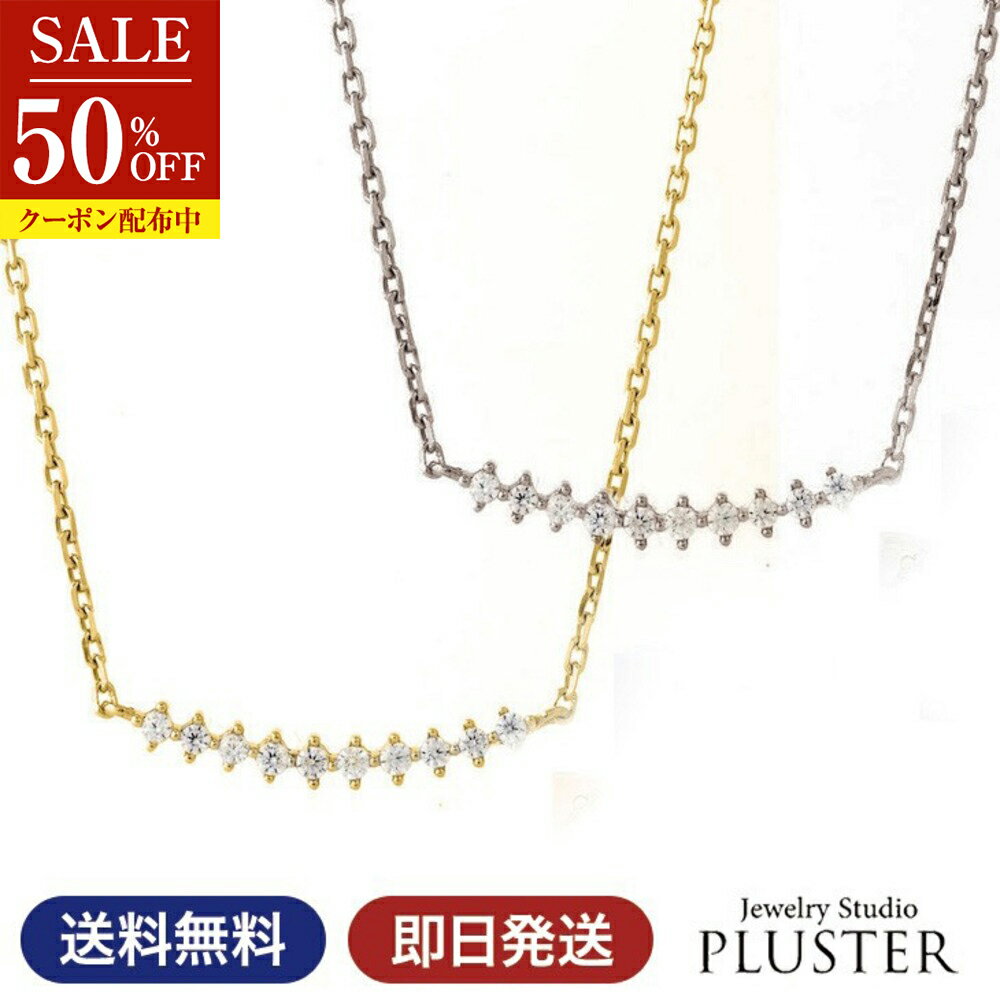 半額 ネックレス レディース スマイル ライン ブランド H&C キュービック ジルコニア 金属アレルギー ラインネックレス バー CZ ゴールド プラチナ シンプル かわいい ジュエリー アクセサリー ホワイトデー クリスマス プレゼント 女性 誕生日 ノンアレルギー