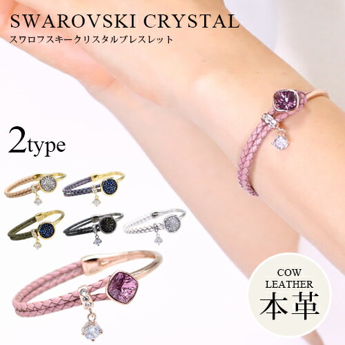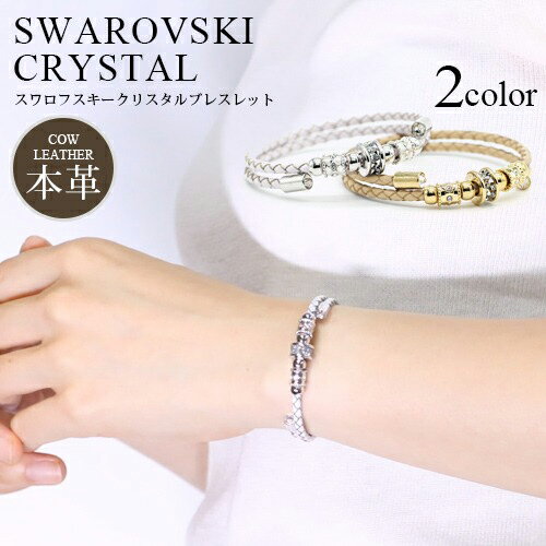 \ブラックフライデー15%OFFクーポン&P5倍/ スワロフスキークリスタル使用 ブレスレット レディース ジュエリー アクセサリ レディースジュエリー 本革 レザー 牛革 アクセサリー ブレスレット ブレスレット パーティー ジュエリー プレゼント white day 日々の定番