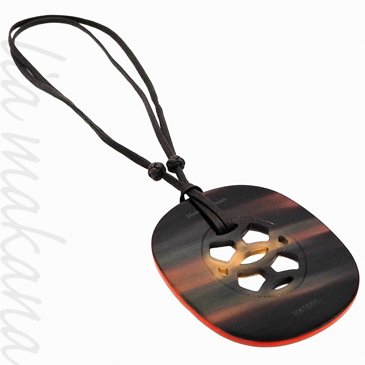 【中古】HERMES エルメス リフトGM バッファローホーン 紐 ダークブラウン オレンジ ペンダント ネックレス【リアマカナ】