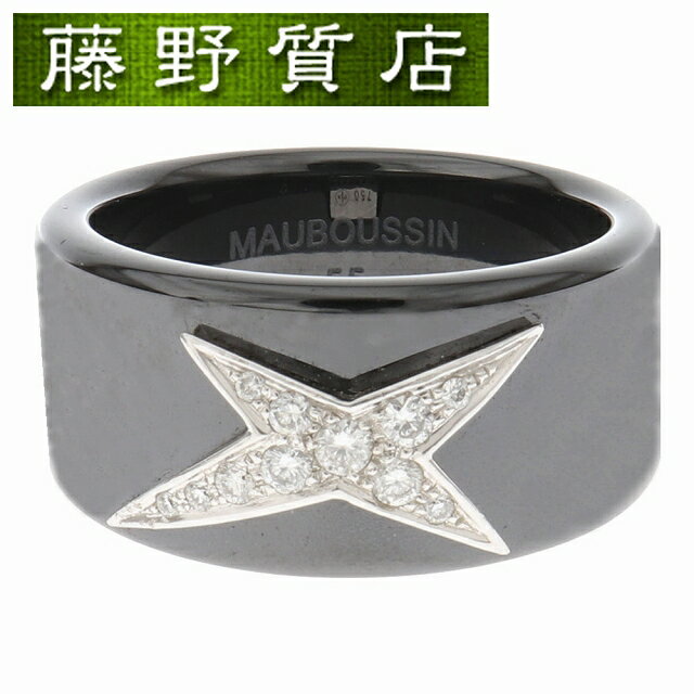 (美品)モーブッサン MAUBOUSSIN エトワール ダイヤ リング#55 約14号 K18 WG × ダイヤ × 黒セラ RI0720WGBCDI 8492