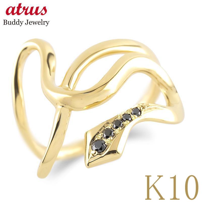 婚約指輪 ヘビ 蛇 リング 指輪 スネークリング レディース ゴールド k10 ブラックダイヤモンド シンプル 10金 イエローゴールドK10 10k ダイヤ エンゲージリング 太め 幅広 巳年 干支 縁起物 ジュエリー 普段 使い ギフト プレゼント 贈り物 プロポーズ 結婚式
