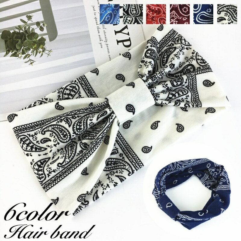 送料無料 ヘアバンド ヘアターバン レディース 女性 ヘアアクセサリー ヘッドバンド 幅広 バンダナ柄 ペイズリー柄 カジュアル 可愛い お洒落 まとめ髪 ヘアアレンジ スポーツ ヨガ 普段使い ファッション小物 ブラック レッド ホワイト ブルー ネイビー ワイン