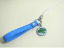 四つ葉のクローバー レザーストラップ サークルS ブルー AHA0151 ステッチループの中にクローバーのチャームが可愛い 幸運のアイテム ラッキーアイテム 天然四つ葉を使用 ART-HOP アートホップ