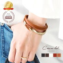 【メール便送料無料】 ブレスレット バングル レディース 本革 牛革 レザー サークル ゴールド 金具 レイヤード 重ね付け 重ね着け 重ねづけ シンプル ブラック ベージュ ブラウン キャメル 30代 40代 50代