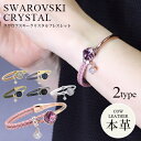 ブレスレット スワロフスキークリスタル使用 2タイプ レディース 2連ブレスレット 揺れる ジュエリー アクセサリ 本革 レザー 牛革 パーティー プレゼント white day 卒業式【在庫限り】
