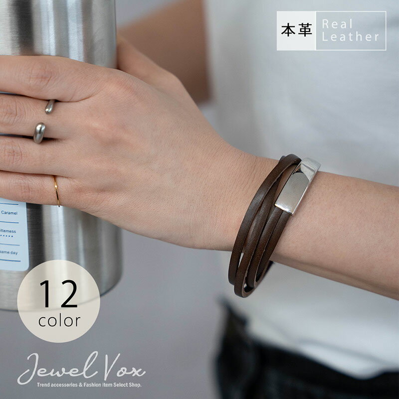 楽天ランキング1位!【ゆうパケット送料無料】 ブレスレット 本革 牛革 リアルレザー メタル フック レディース 多重レザー ブラック ホワイト ブラウン キャメル レッド