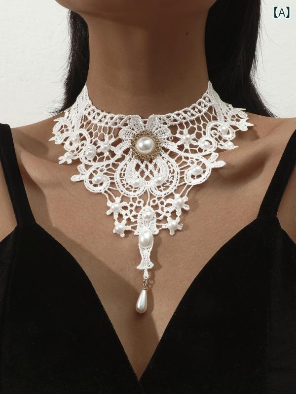 チョーカー ネックレス レディース 女性用 フェイクパール レース 鎖骨 レトロ ヴィンテージ 軽やか 高級感 ユニーク 付け襟 U字型 オリジナルデザイン