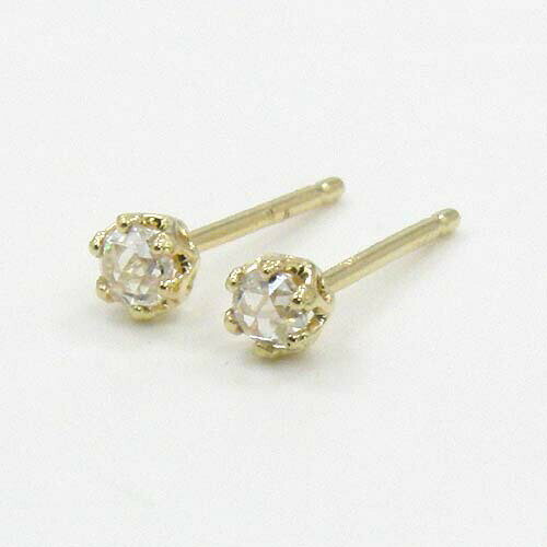 最短翌日 クーポンで大割引 ローズカット ダイヤモンド 18金ゴールド ダイヤモンド(ローズカット)3mm(VS2 H) ピアス(太さ0.9mmx長さ10mm芯・シリコンキャッチ付)