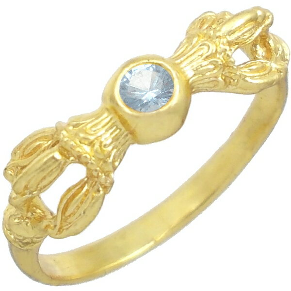 (4月)ジルコニア ゴールドコート バジュラ シルバーリング(指輪) 誕生石