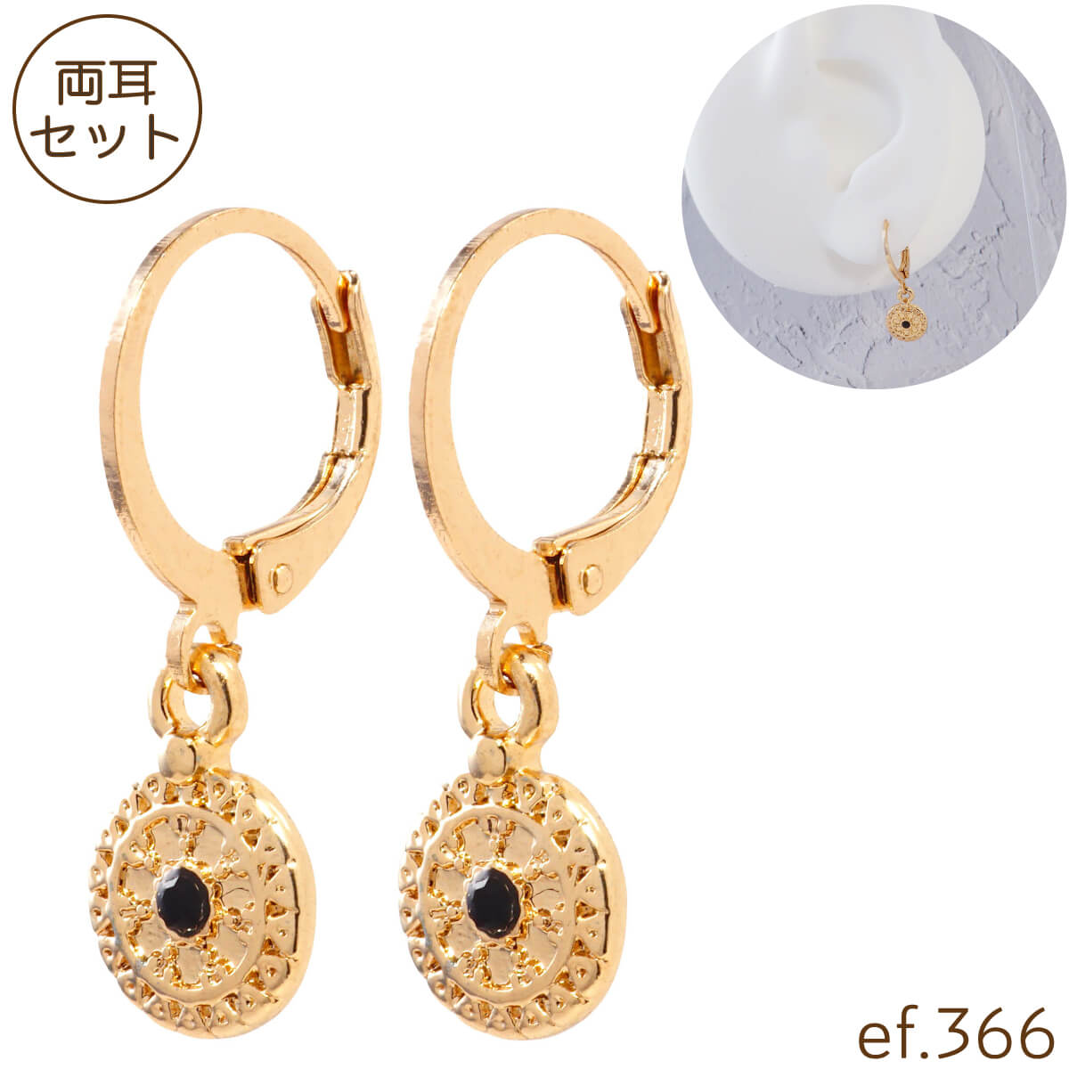 ピアス フープピアス リングピアス コンチョ チャーム ジルコニア ジュエル ゴールド エキゾチック ブラック ストーン ヴィンテージ風 メタル [ef.366]