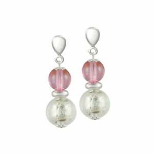 【送料無料】ジュエリー・アクセサリー ピンクムラーノグラスシルバートーンバックスクリュードロップクリップイヤリングveneto rosa vetro di murano tono argento goccia a vite posteriore orecchini a clip