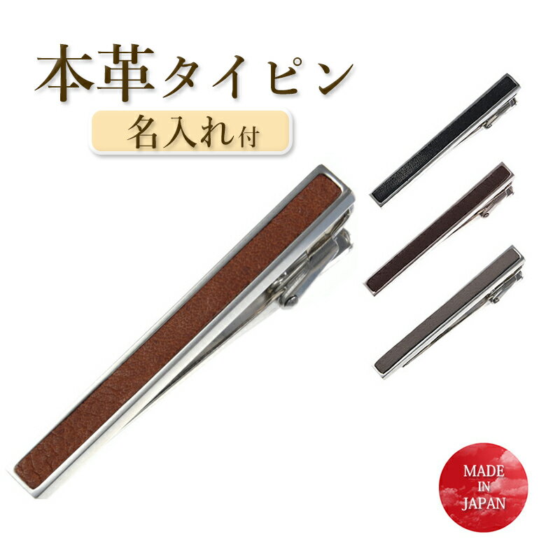 【名入れ付き】 タイピン 本革 レザー 日本製 ネクタイピン タイバー メンズ アクセサリー 紳士用 ビジネス フォーマル 結婚式 [ ブラック 黒 ブラウン 茶 キャメル ギフト プレゼント ギフト 父の日 誕生日 お祝い 入学 入社 就職 ] [M便 1/3]