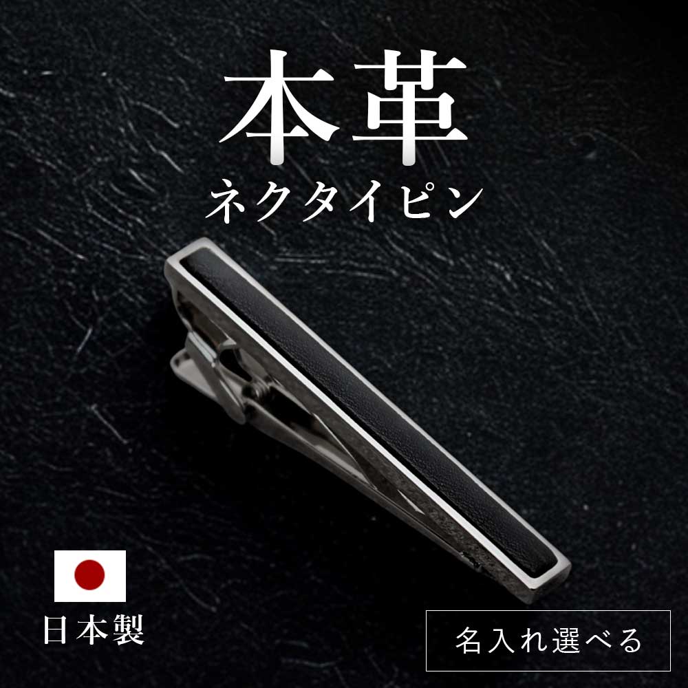★ポイント3倍×100円クーポン★【名入れ選べる!革の質感が胸元を格上げ】 本革 レザー 日本製 タイピン ブラック 黒 ネクタイピン メンズ タイバー アクセサリー ビジネス おしゃれ スーツ ギフト プレゼント 卒業式 入学 クリスマス 卒業 誕生日 就職祝い [M便 1/5]