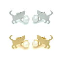 ボール遊び猫 パールピアスパール ピアス ねこゴールド シルバー 猫 キャットピアス ネコ フォーマル 可愛い かわいい 可愛い カジュアル アニマル 動物 シンプル子供服yuai