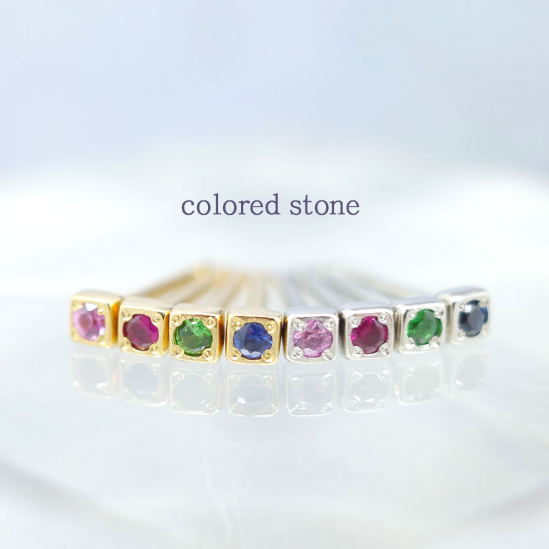 【ピアス】片耳販売4カラー直径1.7ミリ石のセカンドピアスK22 / Pt950軸の太さと長さ選べます金属アレルギー対応 ブルーサファイアルビーグリーンガーネットピンクサファイア軸が太いピアス軸が長いピアス軸が短いピアス