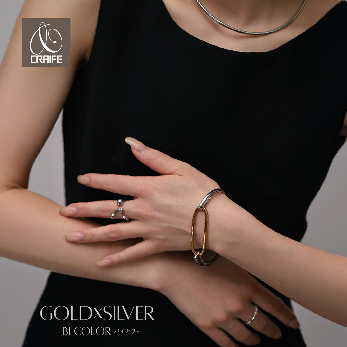 【11/25限定★エントリーで最大300%Pバック】 ブレスレット バングル サージカルステンレス 316L 金属アレルギー対応 18K コーティング レディース 大人 かわいい シンプル エレガント ジュエリー バイカラー ゴールドxシルバー 送料無料 プチプライス高見え CRAIFE