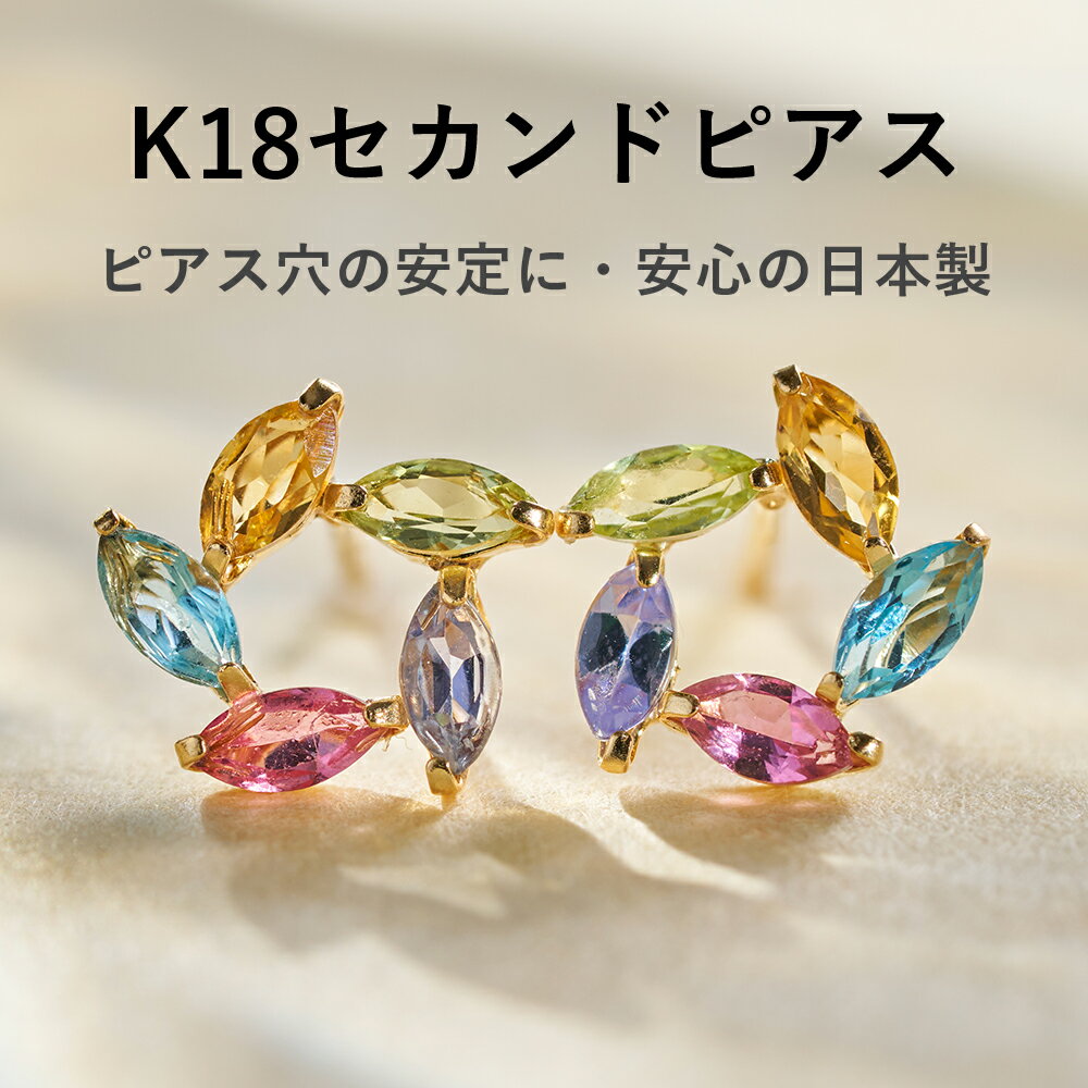【3日以内出荷】 軸太0.8mm 長さ12mm マルチカラーストーン K18ゴールドセカンドピアス・エクラント 日本製 18金 K18 金属アレルギー対応 シトリン ブルートパーズ ピンクトルマリン タンザナイト ペリドット