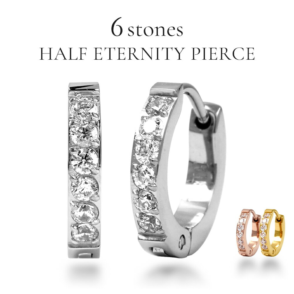 ピアス 金属アレルギー対応 セカンドピアス ファーストピアス レディース 誕生日 プレゼント ステンレス316L フープ 輪 輪っか 中折れ 平打 ピアス 2×12mm キュービック 6石[両耳用]