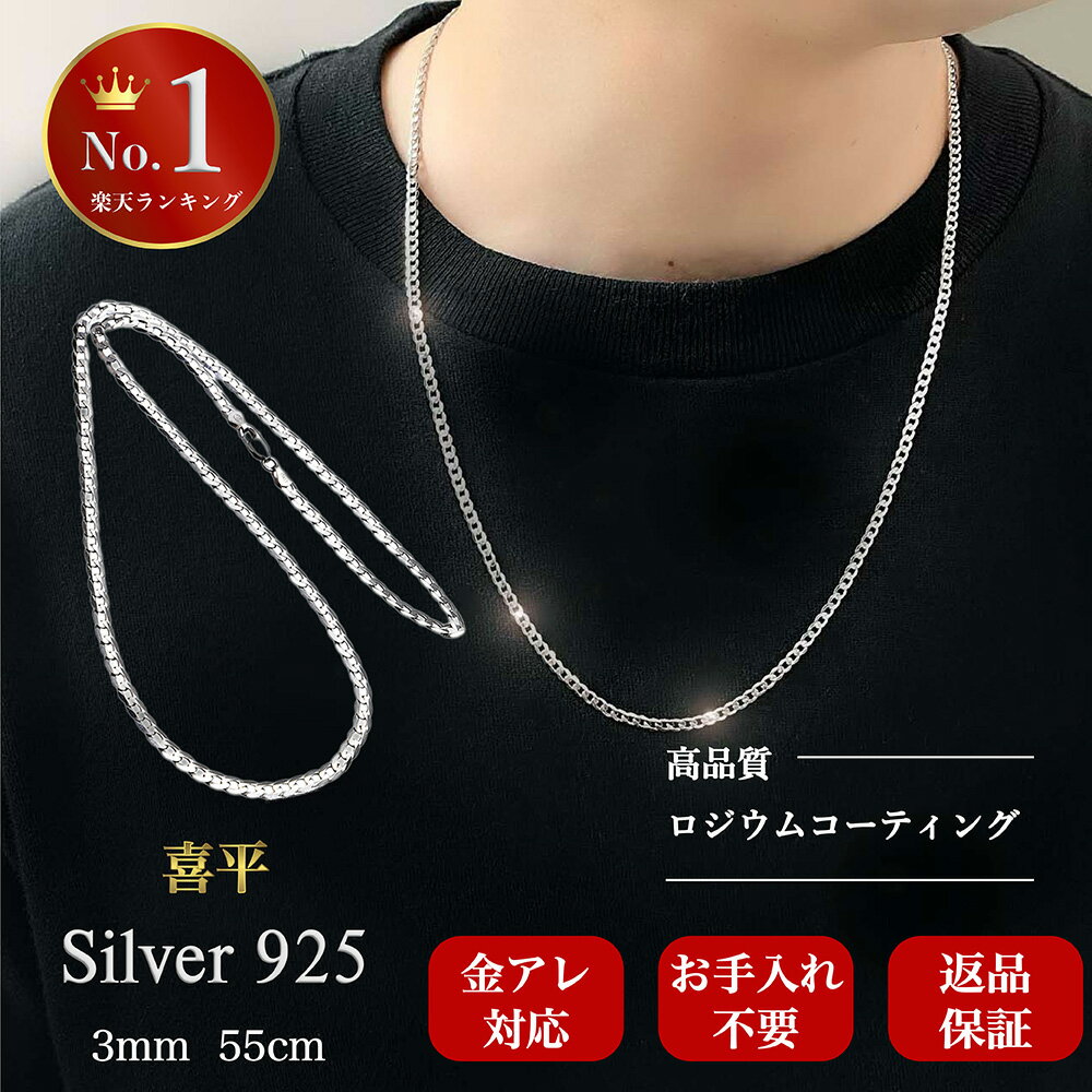 【20時間限定!30%オフクーポン】 [楽天7冠] シルバー ネックレス チェーン メンズ 喜平 925 ブランド 金属アレルギー対応 ロジウムコーティング シンプル キヘイ チェーンのみ [ 銀 6面カット 幅3mm ] [ 55cm ] 誕生日 記念日 プレゼント RaHash