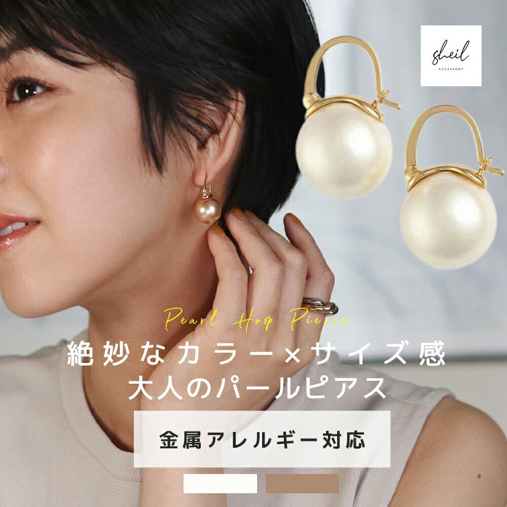 【限定!15%OFFクーポン 2点買22%OFF】 パールピアス パール ピアス フープピアス パールフープピアス 大粒 一粒 金属アレルギー対応 レディース キャッチレス 可愛い 人気トレンド 仕事 オフィス プレゼント 彼女 大人 レディース SHEIL
