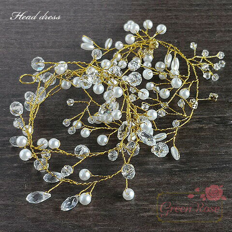 パール・ガラスのワイヤーヘッドドレス ゴールド 2タイプ 1個 ヘアアクセ 金具 パーツ ヘアピン ブライダル 成人式 入学式 卒業式 園 イベント ハンドメイド パーティ 完成品 アクセサリー headdress05 06 GreenRoseYumi
