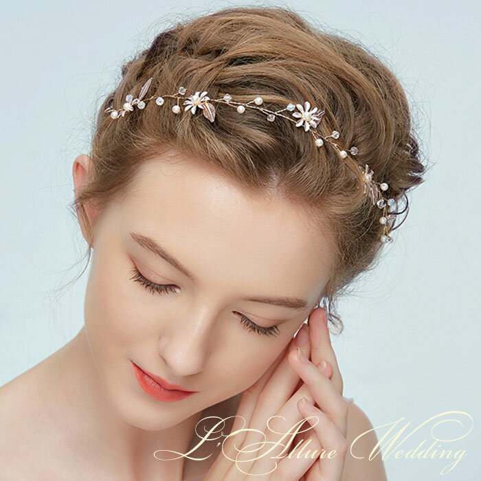 ウェデイング ヘッドドレス ブライダル 小枝 花 リーフ ゴールド 二次会 パーティー 女子会 結婚式 小花 花嫁 ソフトカチューシャ ヘア飾り ヘアアクセサリー お色直し ティアラ 髪飾り 舞台 発表会 成人式 ハンドメイド 海外 挙式