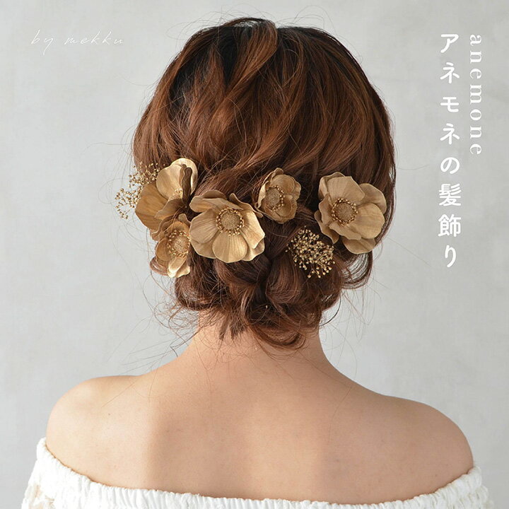 結婚式・成人式・卒業式/アネモネ 髪飾り/ゴールド 金/アーティフィシャルフラワー造花[fc301]