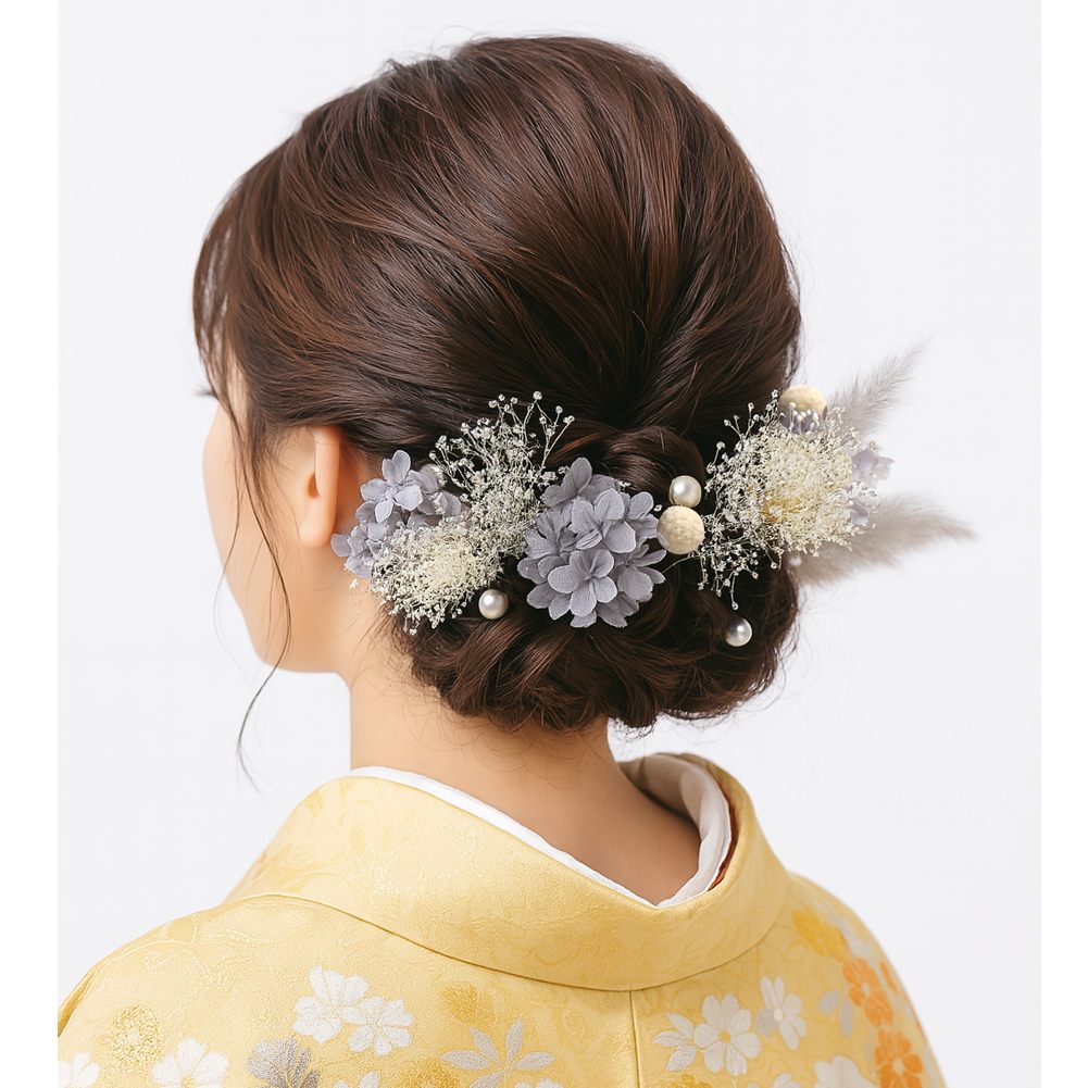 髪飾り 髪かざり アシエ ヘッドパーツ ドライフラワー 和装 着物 ブライダル ウェディング 浴衣 成人式 結婚式 前撮り 卒業式 七五三 ピアノ発表会 ヘアアクセサリー 色打掛 お呼ばれ 振袖 袴 白無垢 ドレス かすみ草 白 シルバー 紫陽花 白 グレー