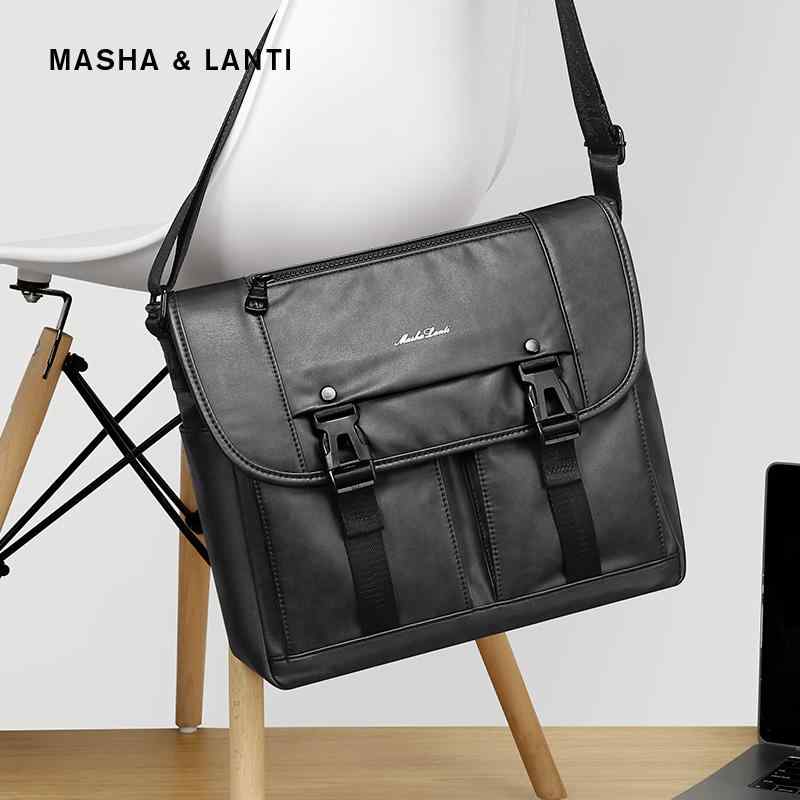 ショルダーバッグ メンズ 斜めがけ PVC カジュアル 春夏 レトロ 柔らかい 撥水性 耐久性 シンプル おしゃれ 普段使い ビジネス チェック柄 黒