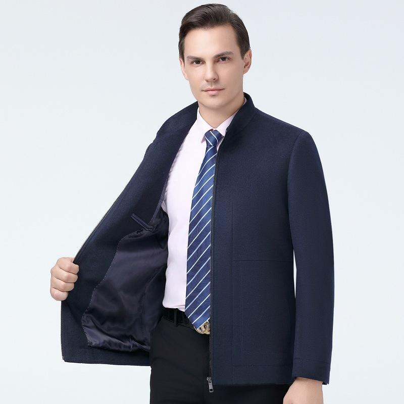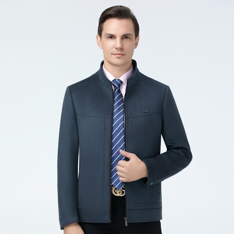 ジャケット メンズ 男性用 ウール アウター ビジネス カジュアル ショート丈 立襟 羊毛 秋冬 防風 撥水性 通気性 耐摩耗性 ブルー