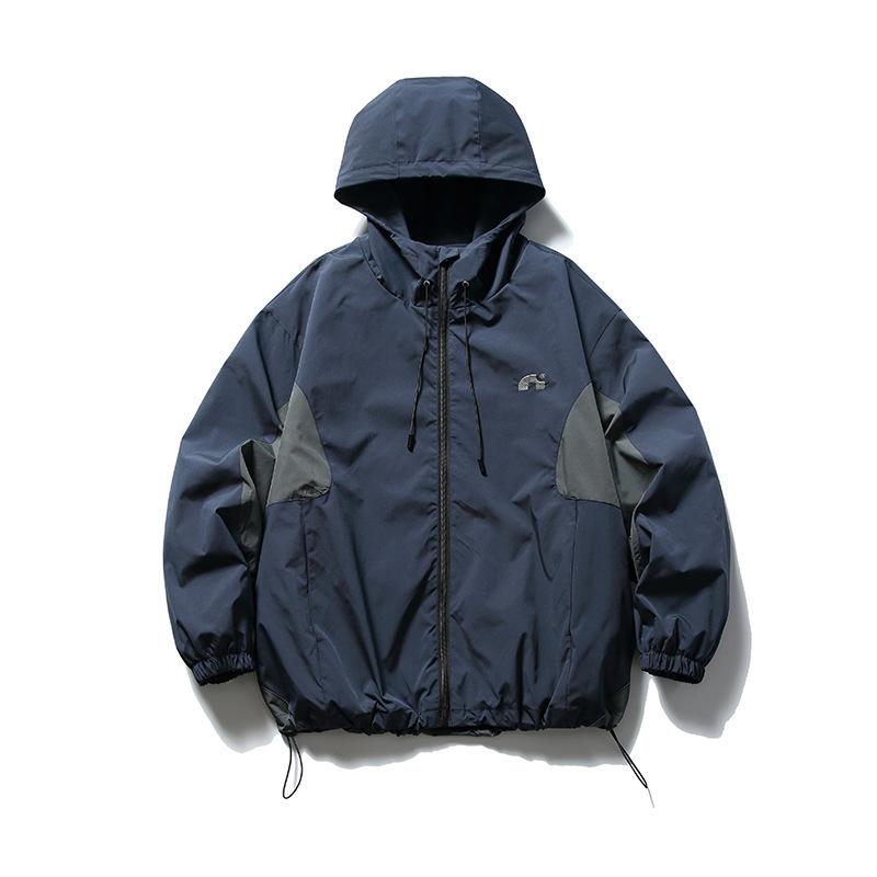 ジャケット 男性用 日系 レトロ アウトドア 配色切り替え 刺繍 フード付き 撥水性 耐摩耗性 ジャンパー ブルゾン 若者 普段使い 春秋 藏青 カーキ