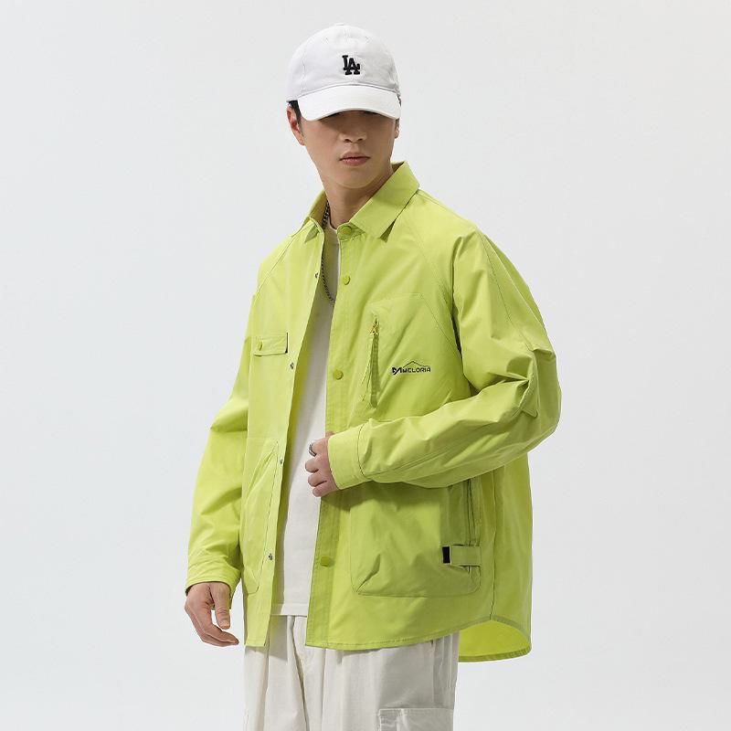 ジャケット メンズ ワークジャケット 春秋 撥水性 ポリエステル 混紡 ゆったり 長袖 襟付き トップス 無地 ポケット付き ブラック カーキ イエロー系