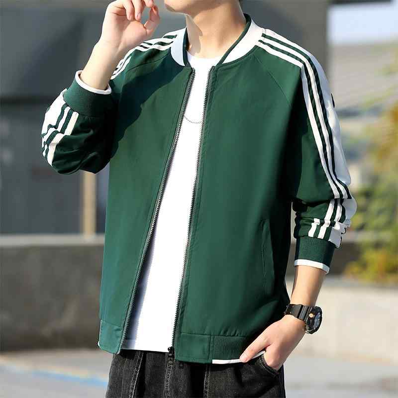 ジャケット メンズ ストライプ柄 ブルゾン ジャンパー 春秋 アウター カジュアル スポーティ トップス 男性用 大きいサイズ 撥水性 通気性 耐摩耗性 ポリエステル 黒 緑