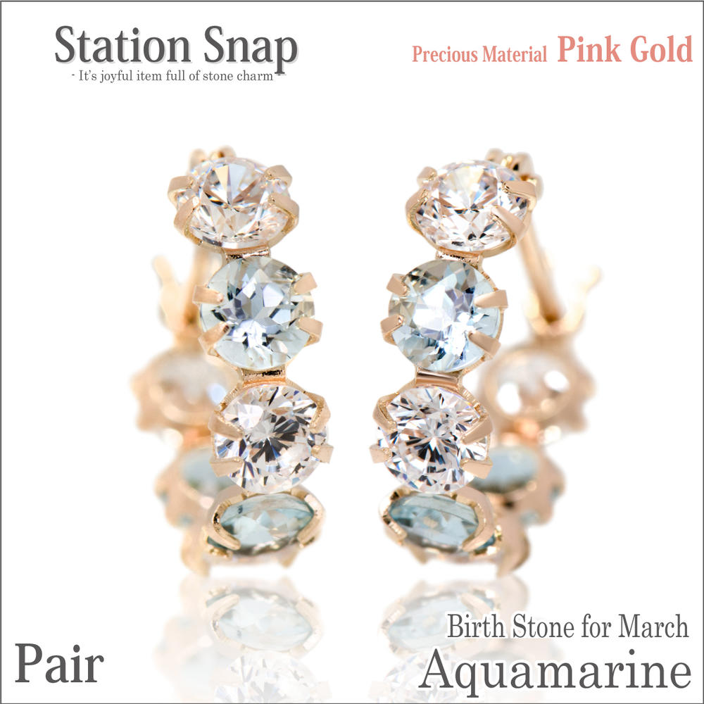 アクアマリン ピアス K10ピンクゴールド 5Aキュービックジルコニア 両耳用 3mm ステーション スナップ 3月 誕生石 シンプル 2 メンズ レディース ホワイトデー お返し 可愛い おしゃれ プレゼント ギフト 男性 女性 記念日 誕生日プレゼント 友達 お揃い
