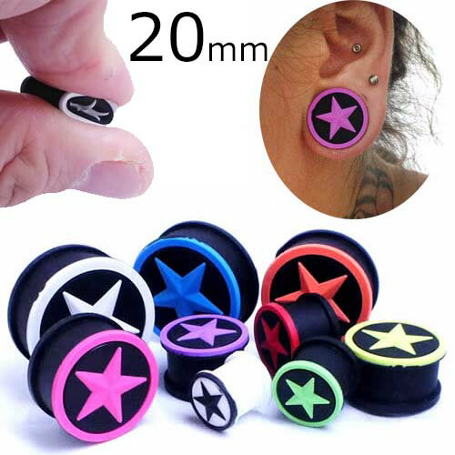 [ 20mm 星 ボディピアス ] シリコンスタープラグ 20.0mm ボディーピアス ダブルフレア メンズ レディース ソフト やわらかい 痛くない ゴム ラバー シリコーン おもしろ 黒色 ブラック ブルー グリーン オレンジ ピンク パープル レッド ライトグリーン インチ