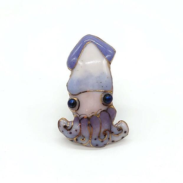 【UncleZ】 七宝焼き ピンブローチ イカ(紫)