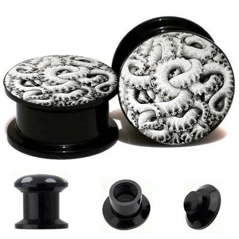 アクリルタッパーフレア(クラーケン) 2ゲージ 2G 0ゲージ 0G 00ゲージ 00G 12.0mm 12mm ボディピアス メンズ レディース 金属アレルギー対応 耳 プレゼント ギフト プラグ ボディーピアス ネジ式 ブラック 黒色 人気 樹脂 蛸 たこ タコ 烏賊 イカ イカ 足 海賊 不気味