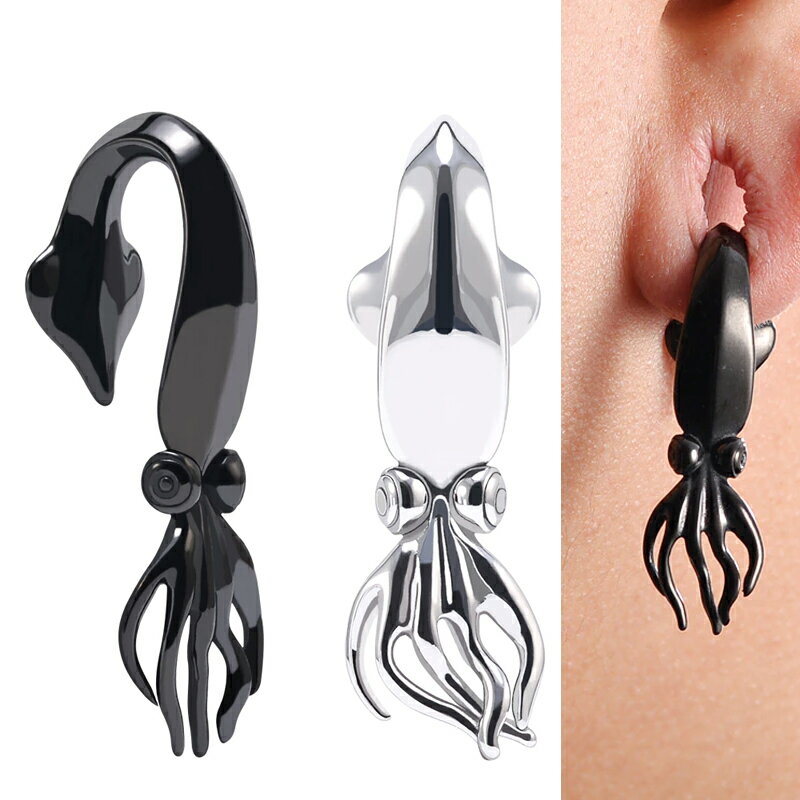 [12mm相当 ボディピアス] イカウエイト ボディーピアス 12ミリ以上 1個 クラーケン 烏賊 いか 海産物 水族館 メンズ レディース おもしろい 面白い ユニーク フック型 プレゼント 重い 重たい 拡張 伸ばす 黒色 ブラック 銀色 シルバー 立体 男性 女性 ビッグホール 大きい