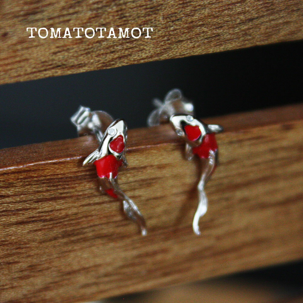 水中を悠然と泳ぐ錦鯉のピアス。 差し色の赤が鮮やかで和装や夏のお出かけにピッタリ。 尾ひれを揺らして涼やかに泳ぐ様子を耳たぶ上で再現。 昔から富の象徴と言われる鯉モチーフ、 立身出世をもくろむ若者にプレゼントするのも面白いかも♪ 個人的には錦鯉業者の方に着用していただきたいピアスです。 外国の方、インバウンド向けのお土産にもどうぞ♪ ・サイズ:10mm×13mm(いずれも最大値) ※イヤリングへの変更は行っておりません