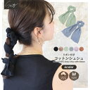 シュシュ リボン シュシュ 大人 リボン付き コットンシュシュ 綿100% 取外し可 2way ヘアアクセサリー ガーゼコットン スカーフ 女の子 ガーリー カジュアル 可愛い 大ぶり 大きい パステルカラー まとめ髪 ヘアアレンジ デイリー シンプル 無地 *1-2t *2-4t *y3-7t