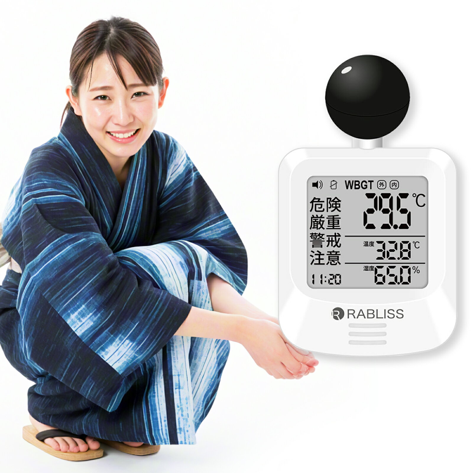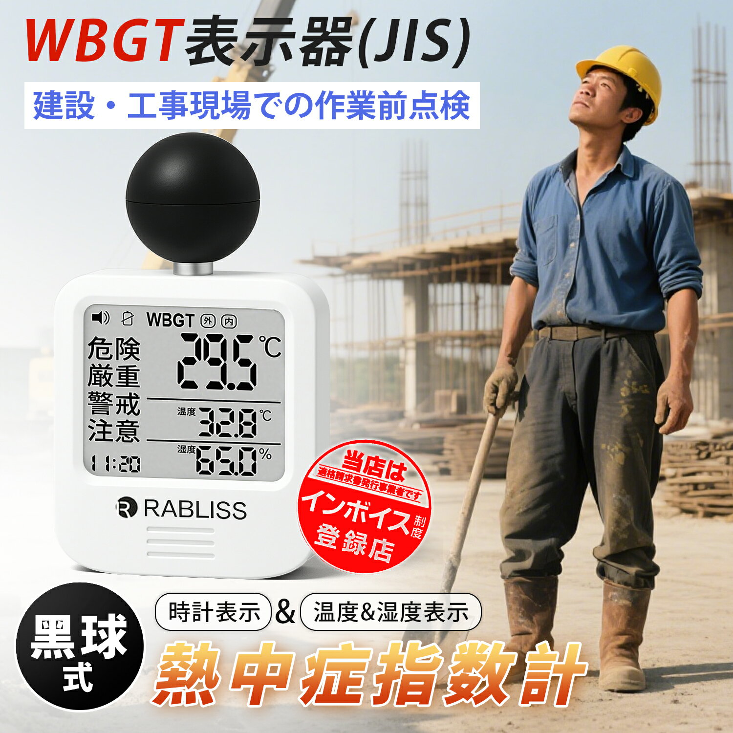 【改良版・高精度計測機能】熱中症指数計 黒球式 熱中症対策 時計 球式 JIS規格 工事現場 黒球 気温 湿度 輻射熱 置き型 熱中症計 温湿度計 時計表示付き 通学 室内 ラブリス アラーム機能 腕時計 気温 測定器 熱中症管理 WBGT計 KO392保育園 病院 消音 RABLISS 温度計