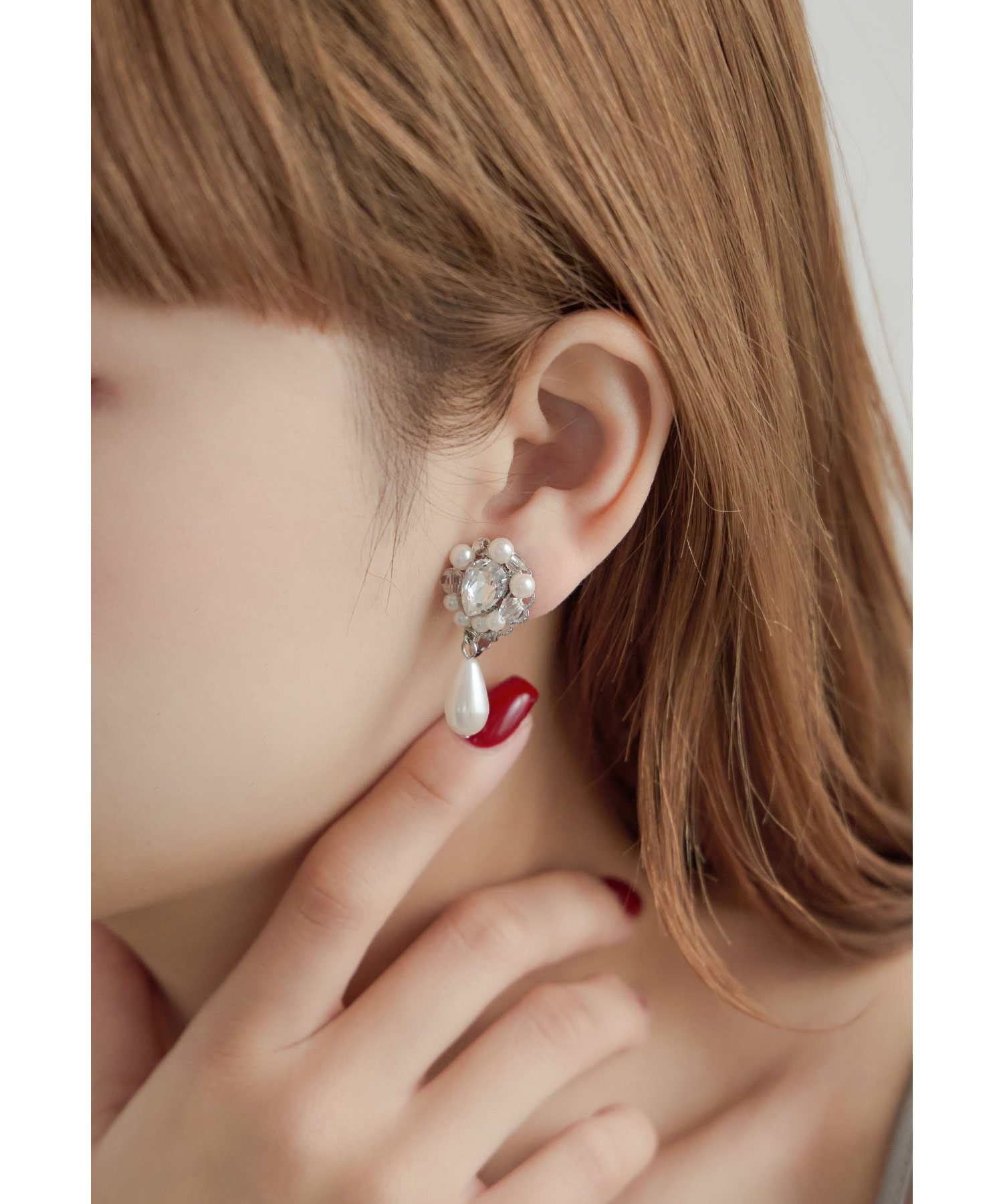 niana ドロップパールビジューイヤリング 結婚式 二次会 同窓会 お呼ばれ フォーマル ビーフラット アクセサリー・腕時計 イヤリング・イヤーカフ シルバー ゴールド