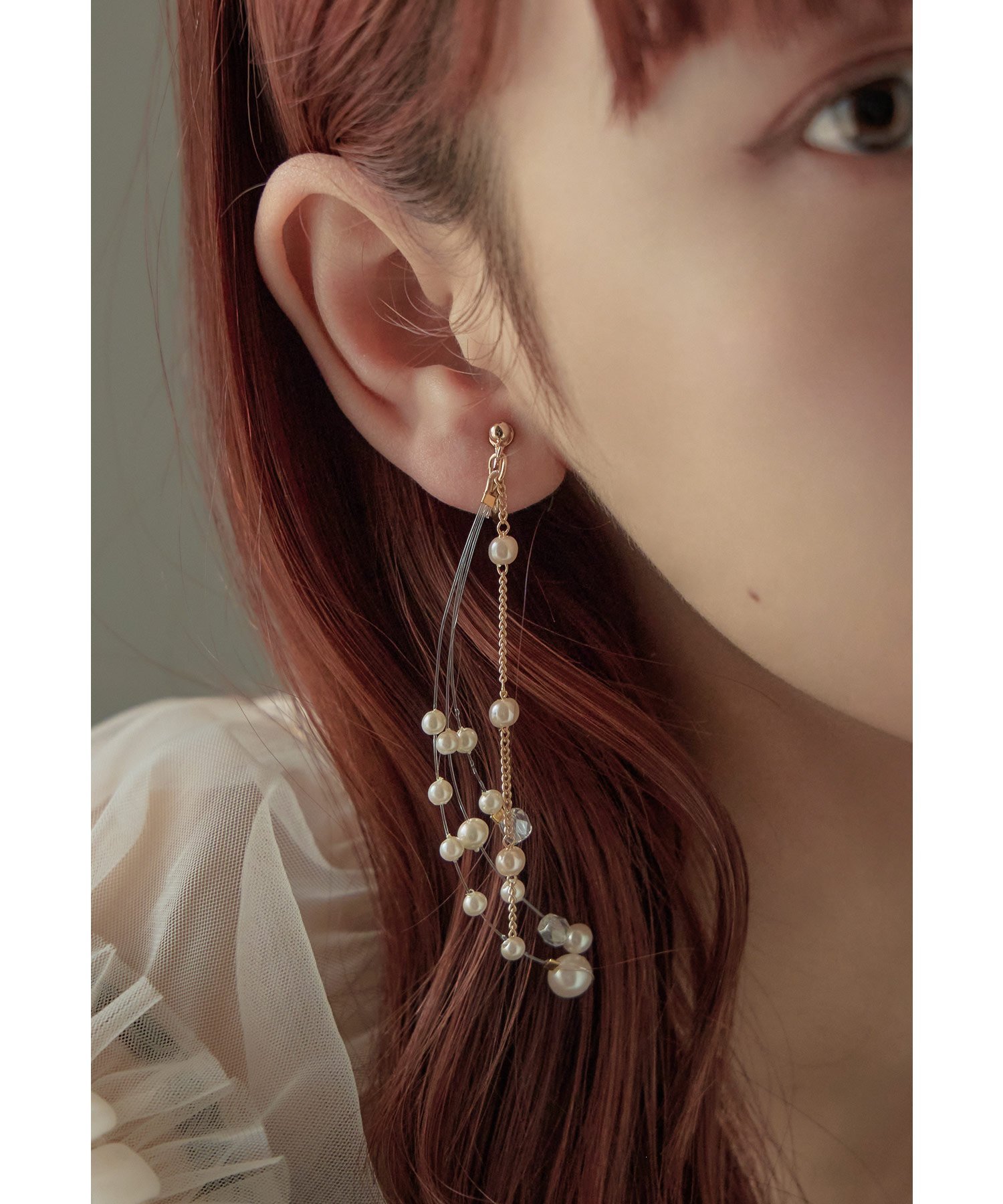 niana クリアスレッドパールイヤリング 大人 結婚式 お呼ばれ オケージョン 華やか 上品 ビーフラット アクセサリー・腕時計 イヤリング・イヤーカフ ホワイト