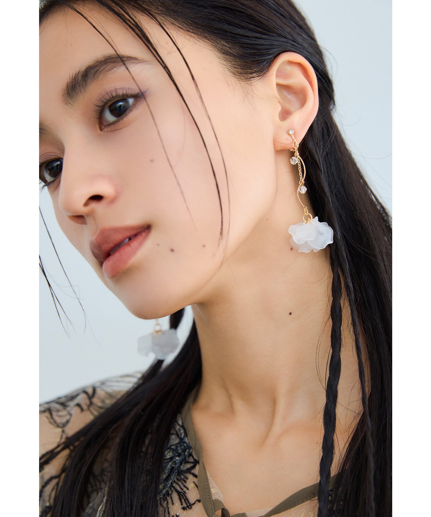 niana シアーフラワーイヤリング 両耳 ロング ゴールド シルバー 結婚式 二次会 同窓会 ビーフラット アクセサリー・腕時計 イヤリング・イヤーカフ ゴールド シルバー